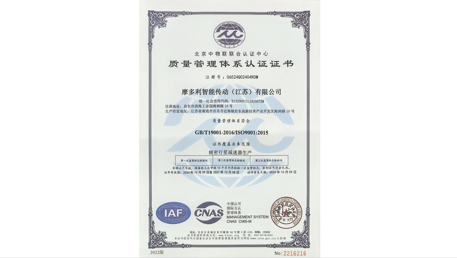摩多利智能傳動(江蘇)有限公司擁有一套完善標準的組裝生產線及質量保證體系。公司秉承“用科技,為世界創造價值”的理念,服務于客戶。